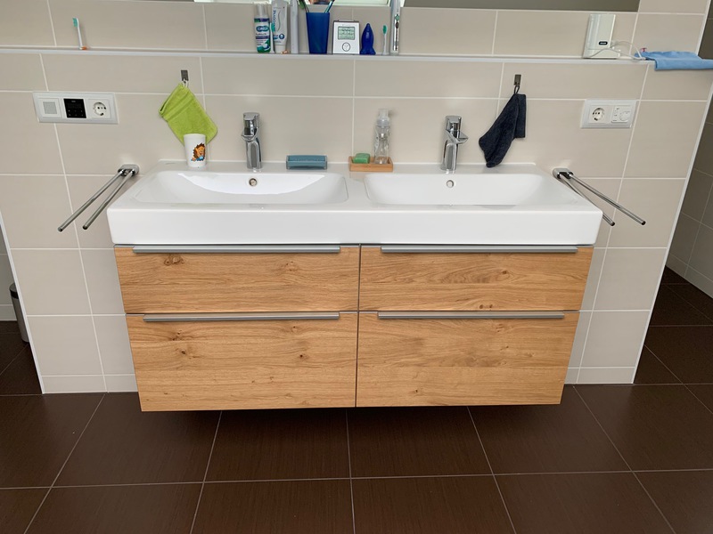 Küchenumbau und Ergänzungen, Badumbau mit HPL Rückwandplatten,