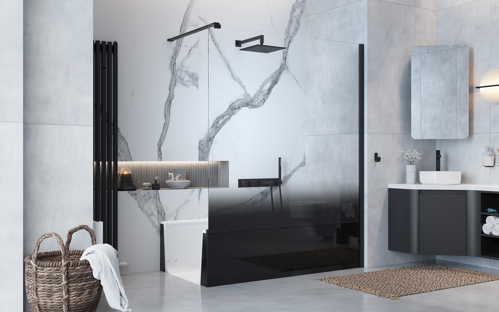 Schnelle Badrenovierungen mit wasserfesten HPL Rückwandpaneelen in verschiedenen Dekor Motiven.