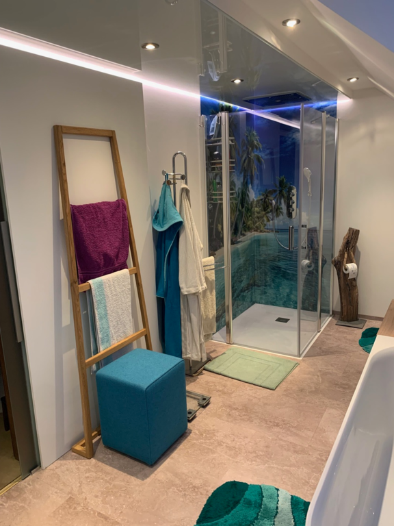 Badumbau oder schnelle Badrenovierungen mit HPL Rückwandplatten.