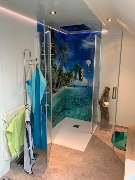 Zusätzliches Beispiel unserer Ausstellung, die ebenfalls mit einer bedruckten Glasnische aufgewertet wurde.