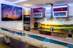 - Farblose U-Küche wurde durch Glasnischen Rückwand und Epoxy Rivertable Theke enorm aufgewertet und erstrahlt in neuem Glanz!