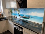-Schöne kleine Küchenzeile wurde durch rückseitig bedruckte Glasrückwand