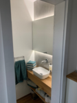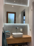 -Kompletter Gäste-Badumbau mit neuer Wandgestaltung mit Großformatfliesen, neue Waschtischablage in Massivholz mit Aufsatzbecken umd Spiegel auf Trägerplatte mit Hintergrund LED-Beleuchtung!